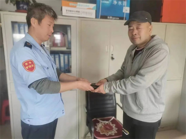 當(dāng)駕駛員翟曉東行駛到橫街車站后,失主楊先生已等候在車站,翟曉東確認失主身份后便將手機還給了楊先生。