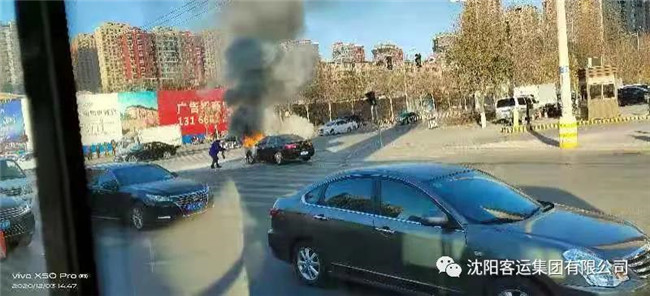 路遇私家車自燃,就在周圍人驚慌失措時,路過的渾河雷鋒號公交車駕駛員挺身而出,抱著滅火器充當了一次“消防員”。