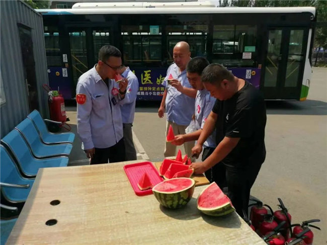 公司各車隊(duì)為駕駛員提供了冰鎮(zhèn)礦泉水、綠豆湯、西瓜等防暑降溫食物,保障一線駕駛員的休息質(zhì)量,確保駕駛員以最佳狀態(tài)投入到運(yùn)營(yíng)生產(chǎn)工作中。