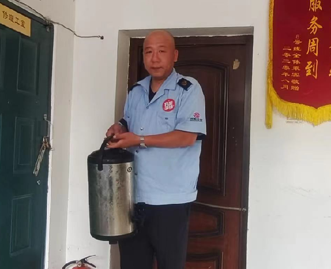 215路駕駛員尚麒麟看到同事們個(gè)個(gè)大汗淋漓、暑熱難耐,便從家里帶來(lái)了冷飲壺,在每天下班時(shí)將各種消暑飲品放在冰柜里冷凍,第二天早早來(lái)到車隊(duì),把準(zhǔn)備好的冷飲放進(jìn)冷飲壺,供車隊(duì)的兄弟姐妹們消暑飲用。