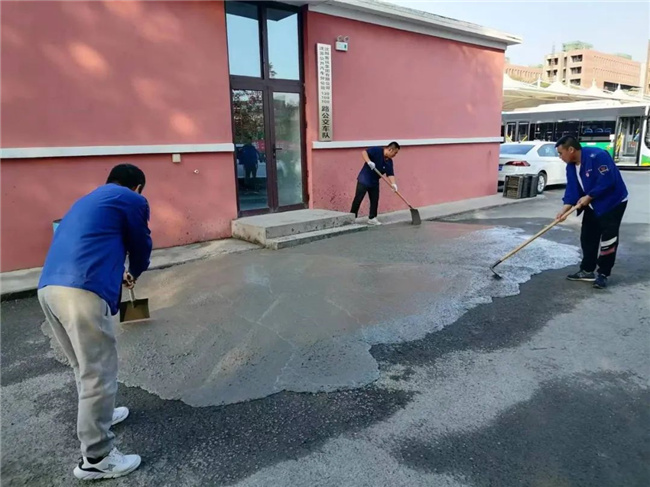 10月11日,沈蘇、鑫暢公司130路車隊開展“振興新突破,我要當(dāng)先鋒”活動,對場區(qū)南側(cè)的路面大坑進行了清理及修復(fù)。