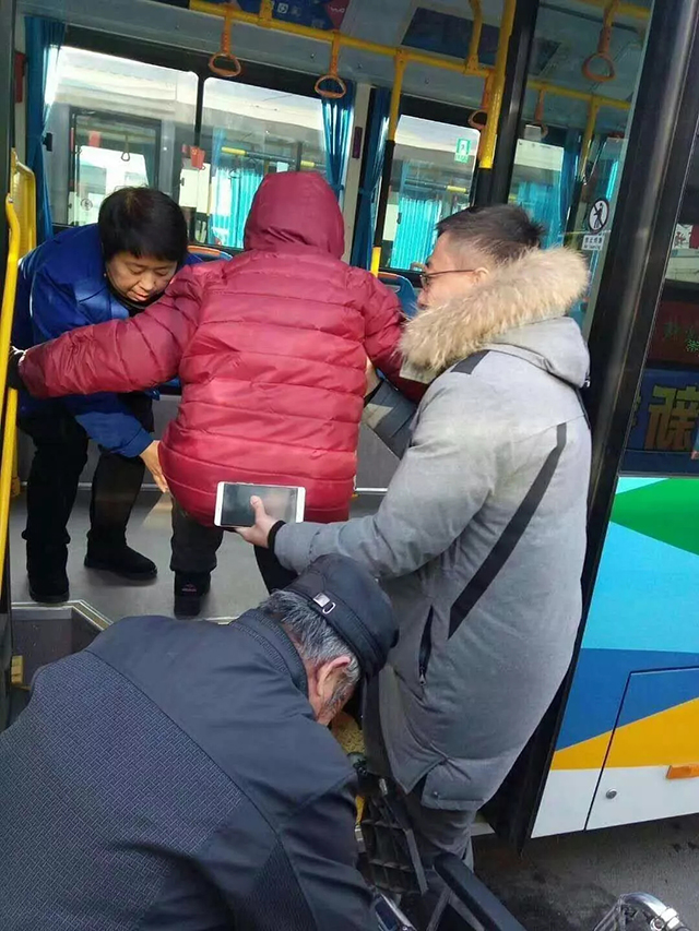 患病的劉阿姨十一年前患上了尿毒癥,兒女不在身邊,只有她和老伴相依為命,每周需要三次透析,隨著病情的加重,從2016年開始,老伴開始用輪椅推她出行。雖然行動(dòng)不便,但受經(jīng)濟(jì)條件限制,他們?nèi)メt(yī)院透析也只能首選乘坐209路公交車。兩位老人成了209路的常客,看到老人上下車不方便,一向以優(yōu)質(zhì)服務(wù)著稱的209路駕駛員們便自發(fā)的對(duì)他們提供了特殊服務(wù),每次遇到老人在車站等車,駕駛員們便停穩(wěn)車輛,下車從后門幫老人把輪椅抬上車,再把老人攙扶上車,遇到老人身體不舒服,駕駛員干脆把劉阿姨背上車。這一背就是三年,兩位老人享受著路線上30余位駕駛員的VIP服務(wù),二老感激的心情無以言表。國慶節(jié)期間,兩位老人特意制作了一面寫有“雷鋒精神代代傳”的錦旗送到車隊(duì),并請(qǐng)來了遼寧電視臺(tái)來到209路車隊(duì)對(duì)2這些助人為樂的駕駛員們進(jìn)行了采訪。采訪中,大家紛紛表示:“看到老人上車太吃力,不幫助他們心里過意不去。